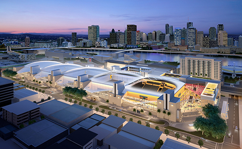 澳大利亞布里斯班會(huì)展中心位于澳大利亞布里斯班,展館有四個(gè)展廳以適應(yīng)客戶的特定需求。1991年昆士蘭州政府決定投資2億美元,35000平方米的會(huì)議展覽中心,并有一個(gè)獨(dú)一無二的屋頂結(jié)構(gòu)形式而中選。在1995年6月6日昆士蘭日正式啟用,由于設(shè)計(jì)的先進(jìn)性,會(huì)議展覽中心得到了世界范圍的認(rèn)可。建筑師和工程師由于設(shè)計(jì)和技術(shù)創(chuàng)新,而得到了一系列的獎(jiǎng)項(xiàng)。會(huì)議展覽中心建在布里斯班河岸邊,沿河?xùn)|西方向布置,北面臨河,南面臨主要干道,交通非常便利,可以很便利地乘坐公共交通交通工具到達(dá)各地,布里斯班南火車站就設(shè)在會(huì)展中心,在中心步行1分鐘可達(dá)南布里斯班地鐵站,步行3分鐘可達(dá)客運(yùn)港,乘車5分鐘可達(dá)市商業(yè)中心。