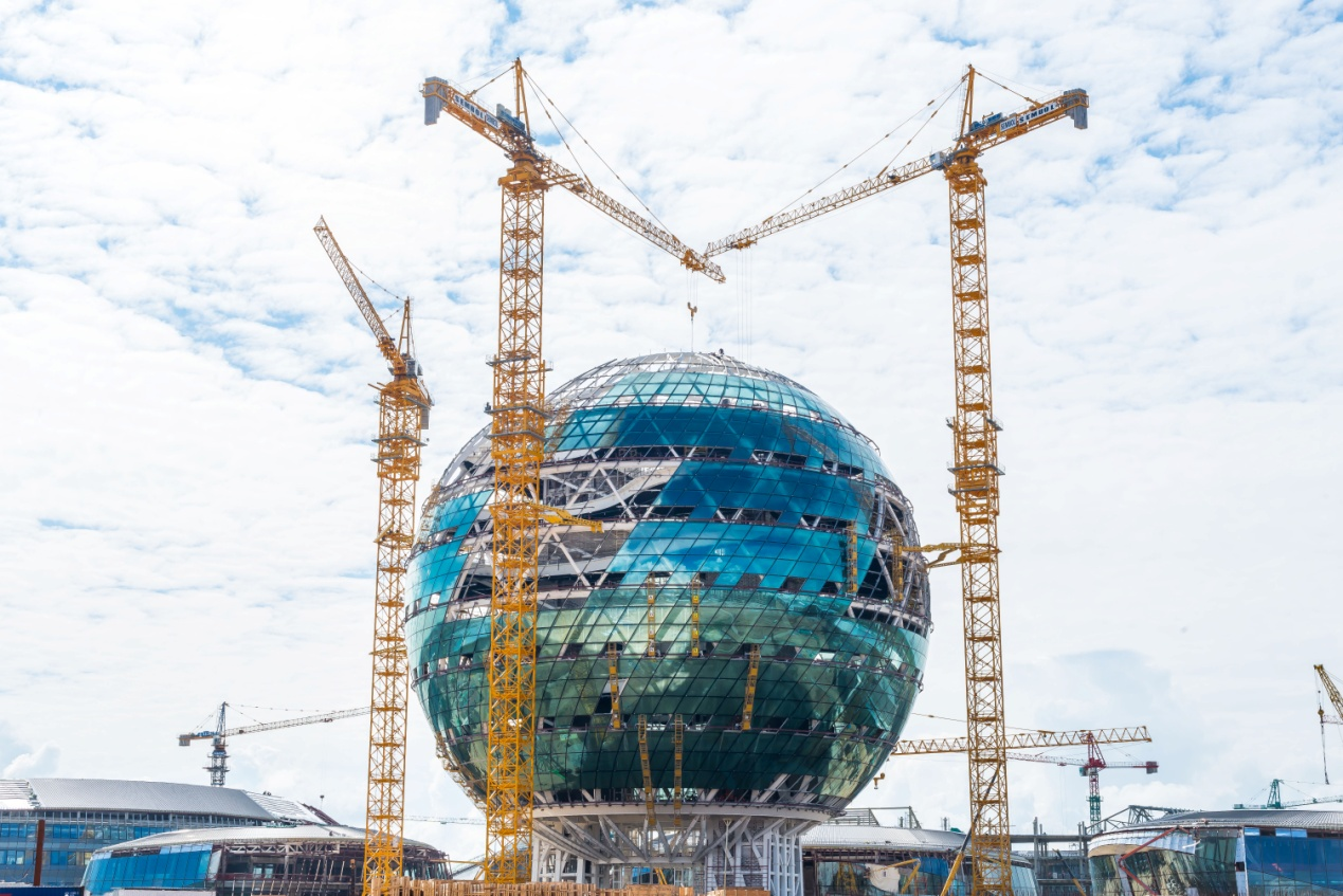 位于哈首都新區(qū)的“2017阿斯塔納世博會”主場館占地5000平米,設(shè)計高度100米,直徑80米,是目前世界上最大的單體球形建筑。這座兼具現(xiàn)代感與科技感的恢弘展館建設(shè),離不開中聯(lián)重科工程機械的深度參與。項目建設(shè)期間,中聯(lián)重科12臺大噸位塔機、7臺汽車起重機和1臺推土機投入展館施工。其中,4臺D1100-63超大噸位塔機是中亞地區(qū)起重能力最強的重型塔機,更是確保主場館項目順利完工的中堅力量。